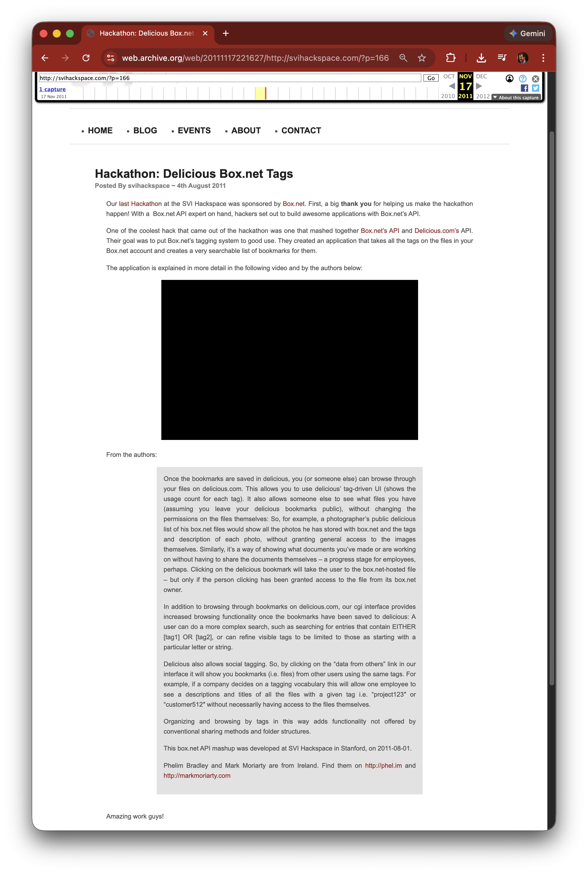 Box.net × Delicious API Mashup — SVI Hackspace, Stanford (August 2011)